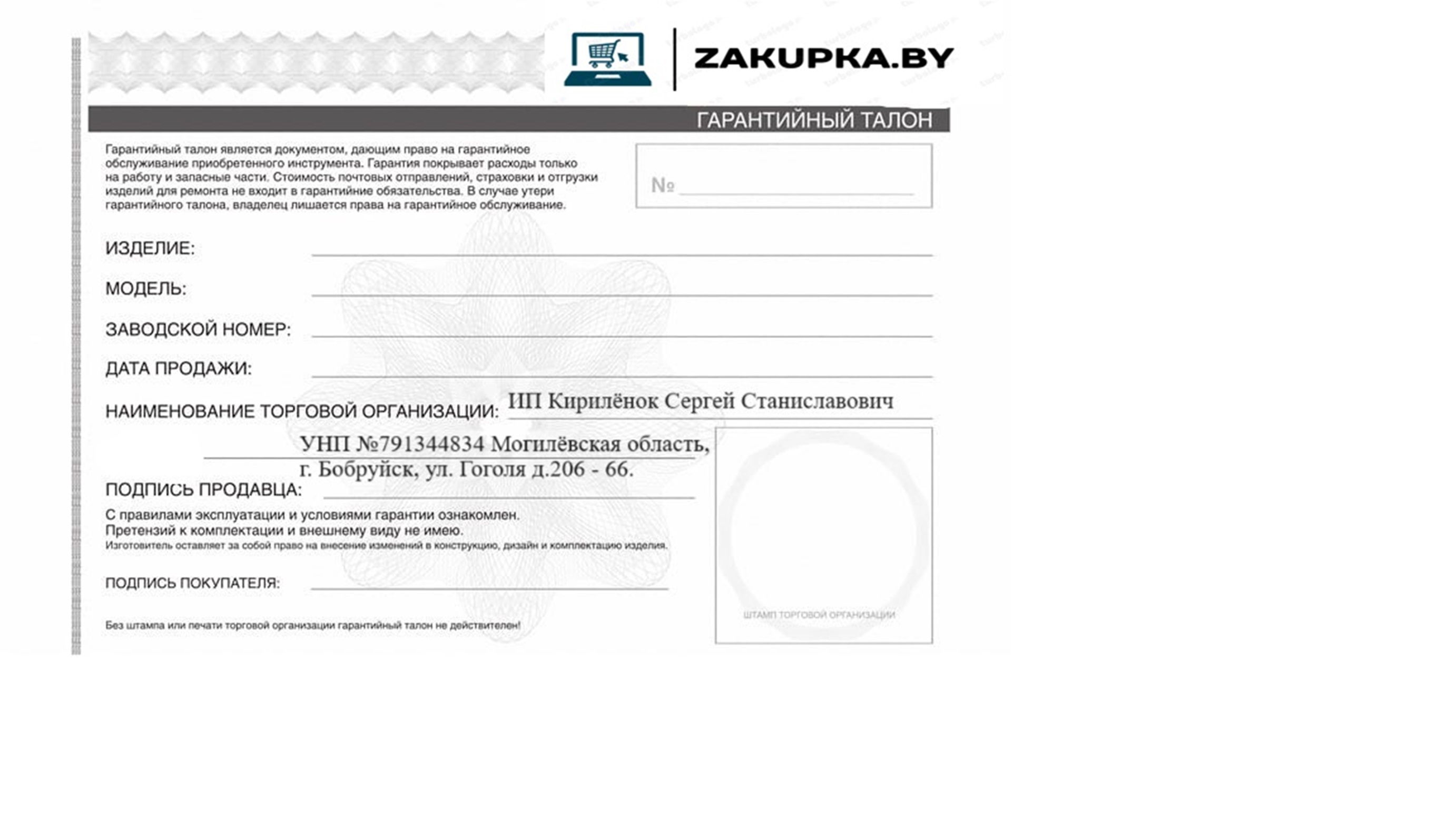 - После заполнения гарантийного талона необходимо произвести расчет. Расчет за товар производится только в белорусских рублях.